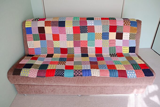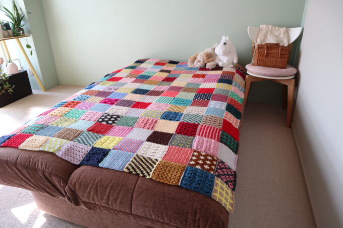 改めて斜め読みしたのですが、当時からベッドカバーくらいの大きさを作りたいと書いていました。時間はかかりましたが、何とか完成させることはできたので目標達成としましょう。